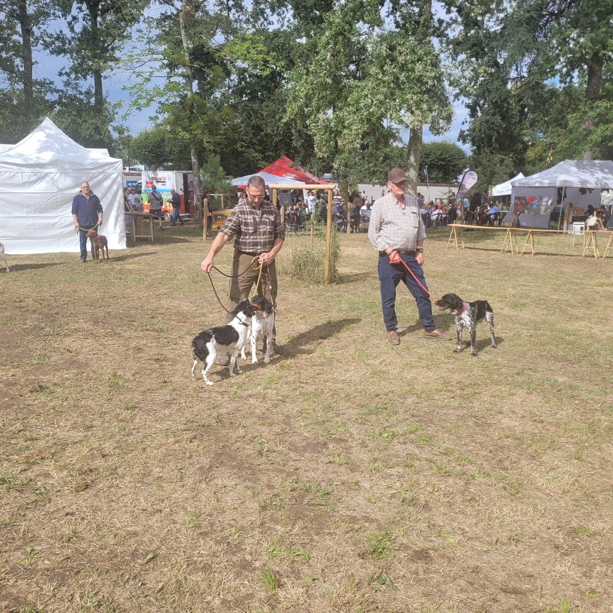 Nous avons installé le stand, vendredi matin. L’après-midi, nous vîmes défiler les écoles. Samedi, le temps fût pluvieux toute la journée. Pas de présentation et peu de visiteurs. Heureusement, la journée de dimanche fût belle. Nous vîmes beaucoup de visireurs et avons fait les présentations de nos chiens sur le ring d’honneur.