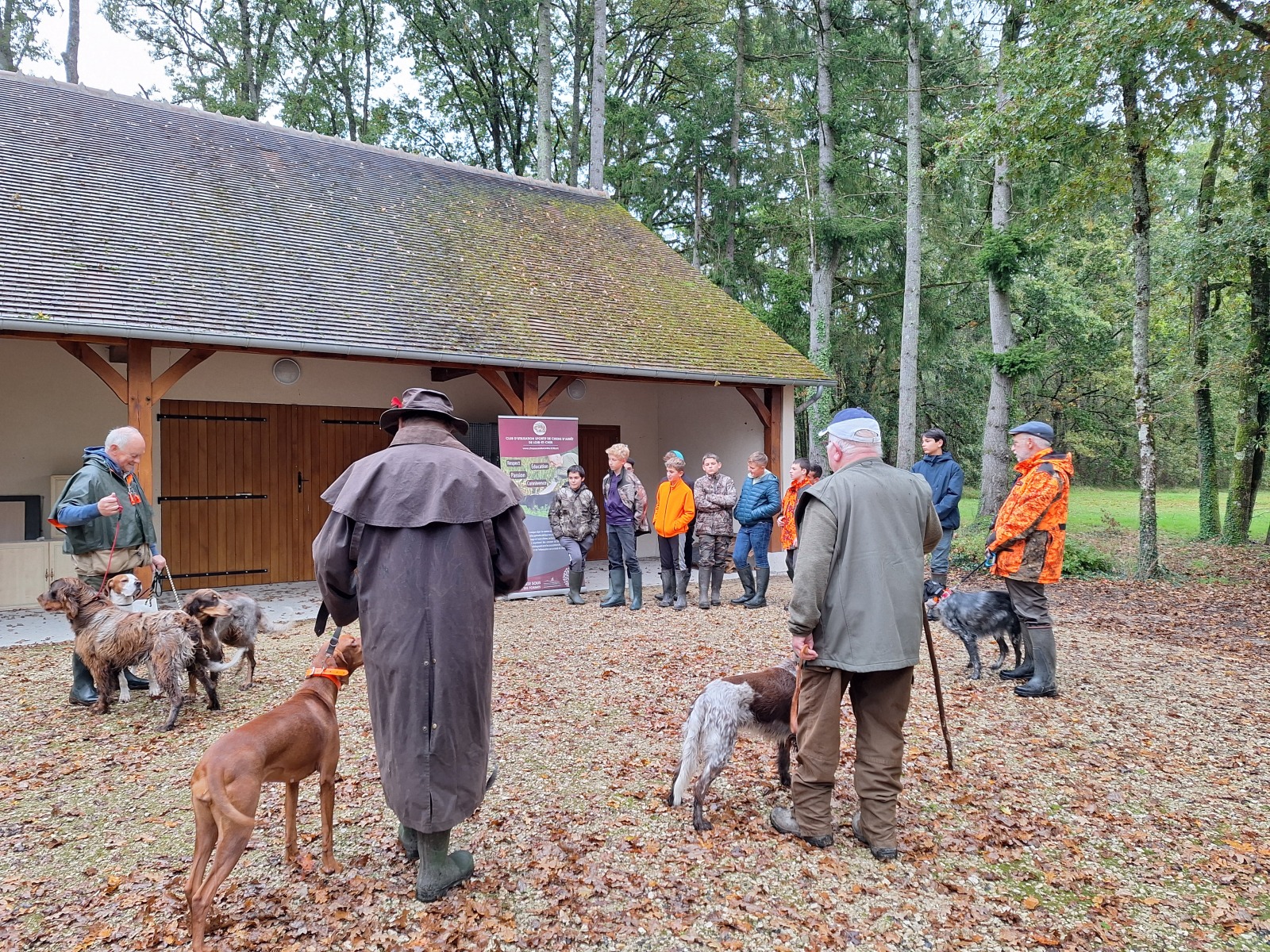 Comme tous les ans, le CUSCA 41 répond présent pour présenter les chiens d’arrêt lors du stage Chasse, pêche et nature aux jeunes présents .